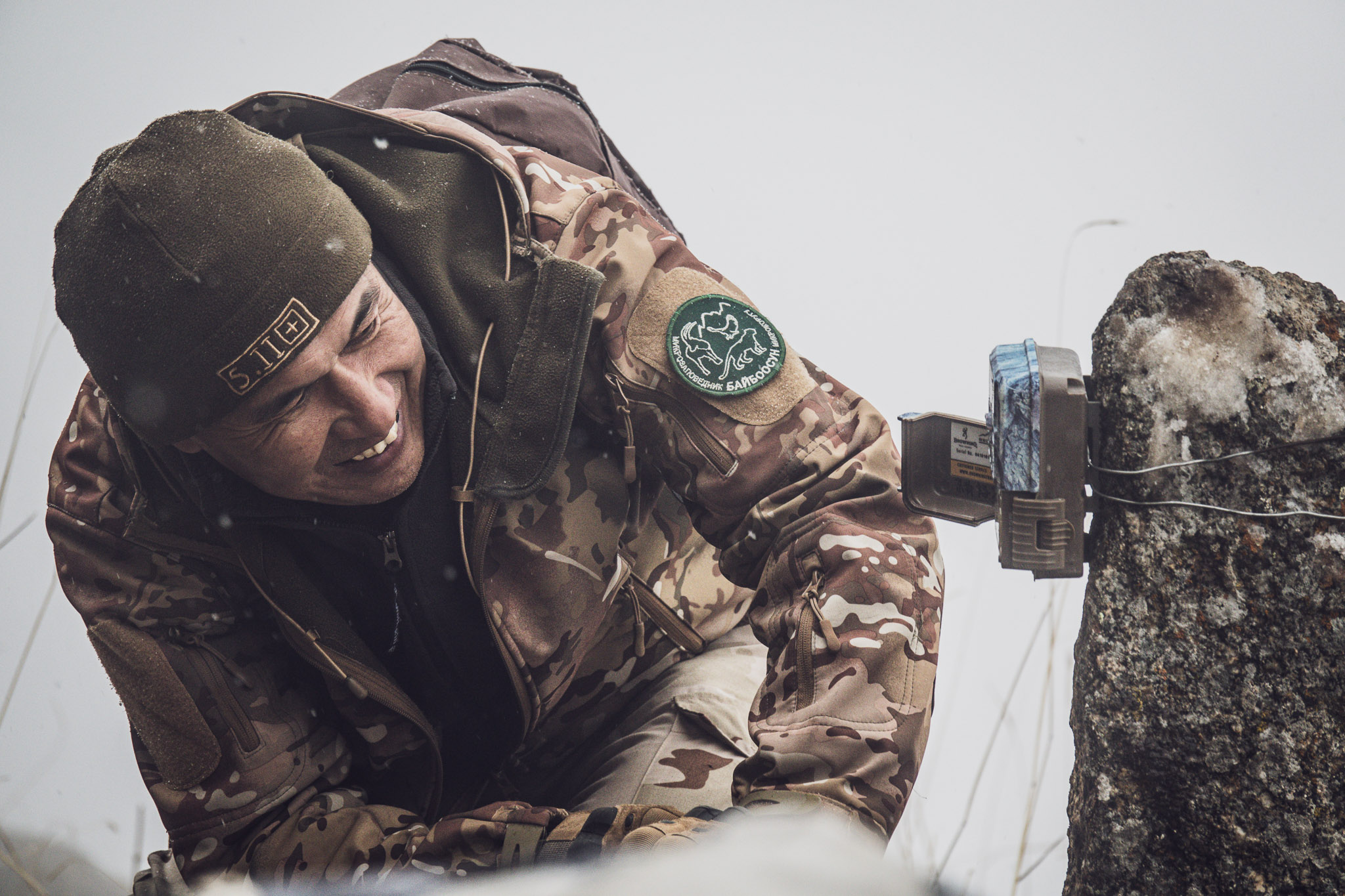 A member of the team at Baiboosun setting up a new camera trap in the nature reserve